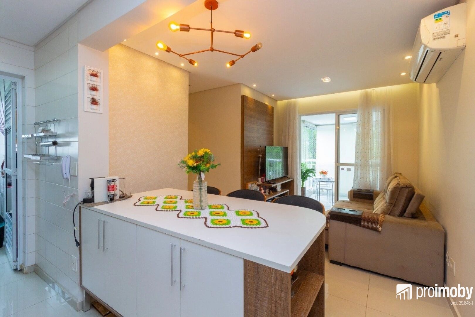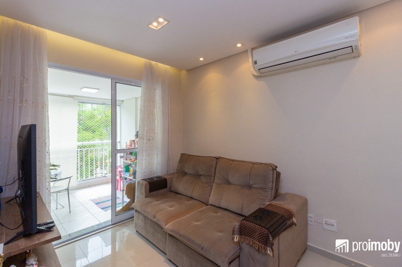 Apartamento com armários na cozinha, nos dormitórios e nos banheiros; é possível instalar ar-condicionado.