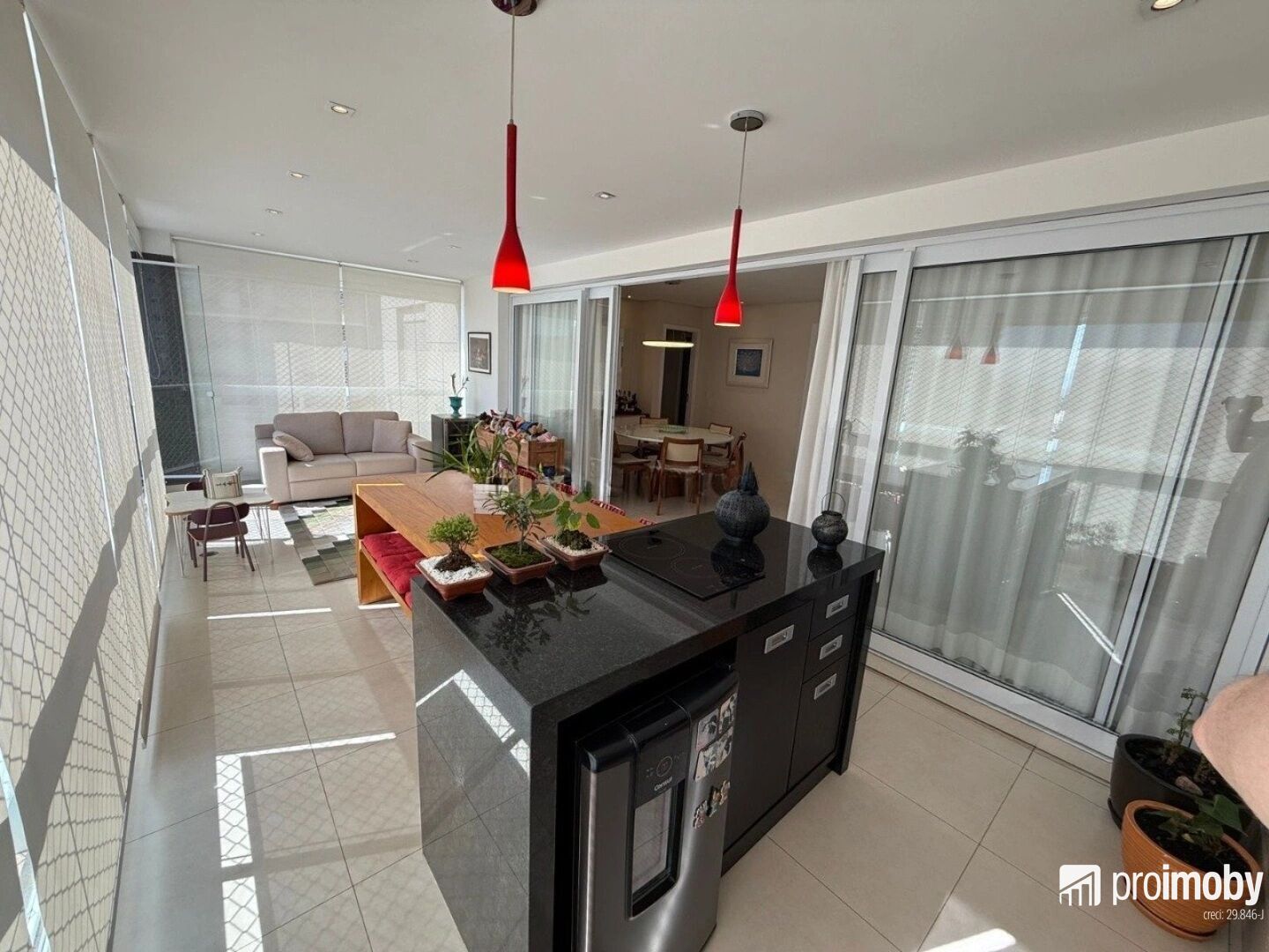 Apartamento com armários planejados na cozinha, nos dormitórios e nos banheiros; terraço fechado com vidro; ar-condicionado.